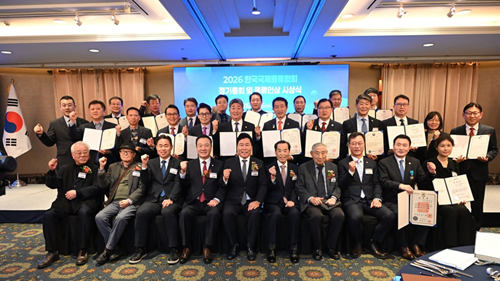 Çѱ¹±¹Á¦¹°·ùÇùȸ(KIFFA)°¡ Áö³­ 25ÀÏ ¡®2026 Çѱ¹±¹Á¦¹°·ùÇùȸ Á¤±âÃÑȸ ¹× ¹°·ùÀλó ½Ã»ó½Ä¡¯À» ¿­°í, ¹°·ù»ê¾÷ ¹ßÀü¿¡ ±â¿©ÇÑ À¯°øÀÚ 28¸íÀ» ǥâÇß´Ù.KIFFA ¿øÁ¦Ã¶ ȸÀå..