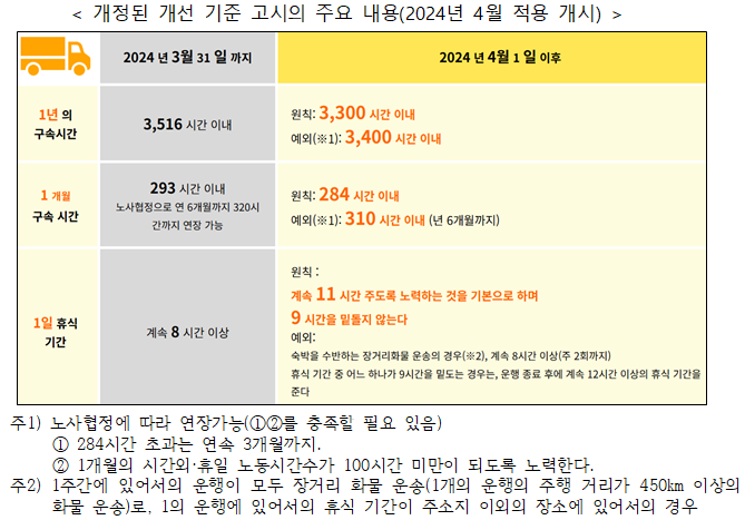 ìíÜâÀÇ Úª×µ 2026³â ¹®Á¦ÀÇ ÀÌÇØ¿Í ½Ã»çÁ¡(1/3) - ڪ׵ 2Ûö °³Á¤(äÐ)À» Áß½ÉÀ¸·Î - ¹°·ù 2024³â ¹®Á¦¿Í 2026³â ¹®Á¦ÀÇ ÀÌÇØ ¡á ¹°·ù 2024³â ¹®Á¦¶õ? ¡¸¹°·ùÀÇ 2024³â ¹®Á¦¡¹¶õ, ÀÏÇÏ´Â ¹æ½Ä °³Çõ °ü·Ã¹ý¿¡ ÀÇÇØ 2024³â 4¿ù 1ÀÏ ÀÌÈÄ, ¡¸ÀÚµ¿Â÷ ¿îÀüÀÇ ¾÷¹«¡¹¿¡ ´ëÇØ, ¿¬°£ÀÇ ½Ã°£è⠳뵿 ½Ã°£ÀÇ »óÇÑÀÌ 960½Ã°£À¸·Î Á¦ÇѵǴ °Í¿¡¼ ¹ß»ýÇÏ´Â ¹®Á¦ÀÇ ÃÑĪÀÌ´Ù. 2019³â 4¿ù 1ÀÏ¿¡ ½ÃÇàµÈ ÀÏÇÏ´Â ¹æ¹ý °³Çõ °ü·Ã¹ý¿¡¼´Â ¡ã¿¬·Ê À¯±Þ ÈÞ°¡ ½Ã±â ÁöÁ¤ ¡ã½Ã°£è⠳뵿ÀÇ »óÇÑ Á¦ÇÑ ¡ãµ¿Àϳ뵿 µ¿ÀÏÀÓ±Ý µî 3°¡Áö¸¦ Æ÷ÀÎÆ®·Î Çϰí ÀÖ´Ù. °³Çõ °ü·Ã¹ýÀÇ ½ÃÇàÀ¸·Î ÀÎÇØ ÆÄÀåÀÌ »ó´çÇÒ °ÍÀ¸·Î ¿¹»óµÇ¾ú´ø ÀϺΠ¾÷°è¿¡ ÇÑÇØ 5³â°£ÀÇ À¯¿¹±â°£À» µ×´Âµ¥, ¿¹¿Ü Áß Çϳª°¡ ¹Ù·Î ÀÚµ¿Â÷¸¦ ÅëÇÑ ¿î¼Û¾÷ÀÌ´Ù. 2024³â 4¿ùºÎÅÍ´Â Æ®·° ¿îÀü»çµéÀÇ Ãʰú±Ù¹« ½Ã°£ÀÌ ¿¬°£ ÃÖ´ë 960½Ã°£À¸·Î Á¦ÇѵǸç, À̸¦ À§¹ÝÇÏ´Â »ç¾÷ÀÚ´Â ¡®6°³¿ù ÀÌÇÏÀÇ Â¡¿ª ¶Ç´Â 30¸¸¿£ ÀÌ»óÀÇ ¹ú±Ý¡¯¿¡ Ã³ÇØÁö°Ô µÇ´Â Á¦µµÀÌ´Ù.