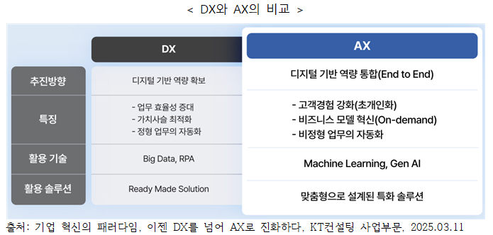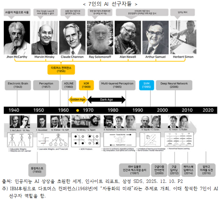 ±×·¯³ª µðÁöÅÐÈ´Â ¾îµð±îÁö³ª µµ±¸Àû º¯È¯¿¡ ¸Ó¹°·¶´Ù. ±â¼úÀÌ ¡®»ç¿ëÀÚ¿¡°Ô ¾î¶² °¡Ä¡¸¦ Á¦°øÇϴ°¡¡¯º¸´Ù´Â ¡®±âÁ¸ ½Ã½ºÅÛÀ» ¾ó¸¶³ª µðÁöÅзΠ¿Å°å´Â°¡¡¯¿¡ ÃÊÁ¡À» ¸ÂÃè±â ¶§¹®¿¡, ±¸Á¶Àû Çõ½Åº¸´Ù´Â ºÎºÐ ÃÖÀûÈ¿¡ ±×Ä£ »ç·Ê°¡ ¸¹¾Ò´Ù. ÀÌÁ¦ ±â¾÷°ú »çȸ´Â DX¸¦ ³Ñ´Â »õ·Î¿î Àüȯ, Áï AX ½Ã´ë·Î ÁøÀÔÇϰí ÀÖ´Ù. AX´Â ´Ü¼øÇÑ µðÁöÅÐȰ¡ ¾Æ´Ï¶ó AI¸¦ Á¶Á÷ÀÇ Á᫐ ½Å°æ¸ÁÀ¸·Î »ï¾Æ ¿¹Ãø, ÆÇ´Ü, ½ÇÇà¿¡ À̸£±â±îÁö Àü °úÁ¤À» ÀÚµ¿È¡¤Áö´ÉÈÇÏ´Â ±Ùº»Àû ÀüȯÀ» ¶æÇÑ´Ù. ÀÌ´Â ±âÁ¸¿¡ »ç¶÷ÀÌ ÆÇ´ÜÇÏ°í ¼öÇàÇÏ´ø ¾÷¹«¸¦ AI°¡ ÀÚÀ²ÀûÀ¸·Î ¼öÇàÇÏ°Ô ÇÔÀ¸·Î½á ¡®±â¼ú Áß½ÉÀÇ µðÁöÅÐ Àüȯ¡¯¿¡¼ ¡®ÀÇ»ç°áÁ¤ Áß½ÉÀÇ AI Àüȯ¡¯À¸·Î ÁøÈÇÏ´Â °ÍÀÌ´Ù. AIÀÇ ½ÃÀÛ°ú ¹ßÀü °úÁ¤ ¡á AIÀÇ ½ÃÀÛ°ú ¿ë¾îÀÇ µîÀå AIÀÇ ½ÃÀÛÀº 1950³â´ë·Î °Å½½·¯ ¿Ã¶ó°£´Ù. 1950³â ¿µ±¹ÀÇ ¼öÇÐÀÚ ¾Ù·± Æ©¸µ(Alan Turing)Àº ±â°è´Â »ý°¢ÇÒ ¼ö ÀÖ´Ù°í ÁÖÀåÇϸç, À̸¦ Å×½ºÆ®Çϱâ À§ÇÑ ¹æ¹ýÀ¸·Î ¡®Æ©¸µ Å×½ºÆ®(The Turing Test)¡¯¸¦ °í¾ÈÇß´Ù. À̰ÍÀº AI¶ó´Â °³³äÀ» ÃÖÃÊ·Î Á¦½ÃÇÑ ¿¬±¸·Î ²ÅÈù´Ù. 1956³â¿¡´Â AIÀÇ °³³äÀ» ¼¼»ó¿¡ ¾Ë¸° ´ÙÆ®¸Ó½º(Dartmouth)ȸÀÇ¿¡¼ ±â°è°¡ Àΰ£Ã³·³ ÇнÀÇÏ°í ¹ßÀüÇÒ ¼ö ÀÖ´ÂÁö¿¡ ´ëÇÑ Åä·ÐÀÌ ÀÌ·ç¾îÁ³À¸¸ç, ÀΰøÁö´ÉÀ̶ó´Â ¿ë¾î°¡ óÀ½ »ç¿ëµÇ¾ú´Ù.