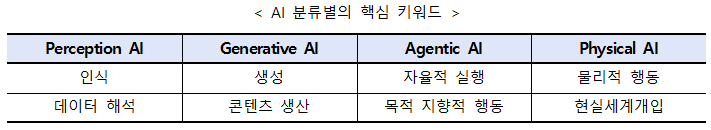 ÃÖ±Ù ºÎ»óÇÑ Agentic AI´Â ½º½º·Î Á¤º¸¸¦ ¼öÁý¡¤ºÐ¼®Çϰí, °áÁ¤À» ³»¸®´Â ´Éµ¿Àû AI·Î Àΰ£ÀÇ °³ÀÔ ¾øÀÌ ¹®Á¦¸¦ ÇØ°áÇÒ ¼ö ÀÖ´Â ÀÚÀ²¼ºÀ» °®°í ÀÖÀ¸¸ç, Physical AI´Â ÀÌ·¯ÇÑ ÀÎÁö¡¤°èȹ ´É·ÂÀ» ¼¾¼, ¾×Ãß¿¡ÀÌÅÍ µî°ú °áÇÕÇÏ¿© ½ÇÁ¦ ȯ°æ¿¡¼ ¾ÈÀüÇϰí Á¤¹ÐÇÑ ÇൿÀ» ±¸ÇöÇÒ ¼ö ÀÖ´Ù.