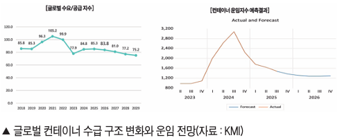 2026³â ±Û·Î¹ú ÄÁÅ×ÀÌ³Ê ÇØ¿î ½ÃÀåÀº ±â·ÏÀûÀÎ ¼±¹Ú °ø±Þ·® Áõ°¡¿Í ¼ö¿ä µÐȰ¡ ¸Â¹°¸®¸ç ¿îÀÓ Ç϶ô ¾Ð·ÂÀÌ °Å¼¼Áú °ÍÀ¸·Î Àü¸ÁµÈ´Ù. KMI ÇØ¿î½ÃÀ忬±¸½Ç Ȳ¼öÁø ½ÇÀåÀº 2026³â ÄÁÅ×ÀÌ³Ê ¿îÀÓÁö¼ö(SCFI) Æò±ÕÄ¡°¡ 1,100~1,300Æ÷ÀÎÆ® ±¸°£¿¡¼ Çü¼ºµÉ °ÍÀ¸·Î ºÐ¼®Çß´Ù. ±Û·Î¹ú ÄÁÅ×ÀÌ³Ê ¿îÀÓÀº °ø±Þ°ú ¼ö¿ä°£ ºÒ±ÕÇüÀÌ ÇØ¼ÒµÇÁö ¾ÊÀº »óÅ¿¡¼ Ç϶ô ¾Ð·ÂÀÌ À̾îÁö°í ÀÖ´Ù. ¼ö¿ä Ãø¸é¿¡¼´Â ÁöÁ¤ÇÐÀû ¸®½ºÅ©¿Í ±Û·Î¹ú °æ±â µÐÈ·Î ÇØ»ó¹°µ¿·® Áõ°¡À²ÀÌ Á¦ÇÑÀûÀÎ ¹Ý¸é, °ø±Þ Ãø¿¡¼´Â ´ë±Ô¸ð ¼±¹Ú Àεµ°¡ À̾îÁö¸ç ¼±º¹ Áõ°¡¼¼°¡ Áö¼ÓµÇ°í Àֱ⠶§¹®ÀÌ´Ù.