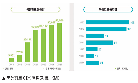 ºÏ±ØÇ׷δ »õ·Î¿î ´ëü Ç×·ÎÀÌÀÚ Àü·«Àû ¿î¼Û ·çÆ®·Î ÁÖ¸ñ¹Þ°í ÀÖ´Ù. KMI ±ØÁöÀü·«¿¬±¸½Ç ±è¾öÁö ½ÇÀåÀº ¡°°ú°Å °úÇÐ Çù·Â Áß½ÉÀÇ ¡®ºÏ±Ø ¿¹¿ÜÁÖÀÇ¡¯°¡ ¾àÈµÇ°í ¾Èº¸¿Í °æÁ¦ÀÇ ÀÌÇØ°¡ °áÇյǴ °¡¿îµ¥ ºÏ±Ø Áö¿ªÀº Á¡Â÷ Çù·Âº¸´Ù´Â °æÀïÀÇ °ø°£À¸·Î º¯ÈÇϰí ÀÖ´Ù¡±°í ¼³¸íÇß´Ù. ÃÖ±Ù¿¡´Â ·¯½Ã¾Æ°¡ ÁÖµµÇÏ´Â ºÏµ¿Ç×·Î(NSR)ÀÇ ¼ºÀåÀÌ °¡ÆÄ¸£´Ù. ·¯-¿ì ÀüÀï¿¡ µû¸¥ ´ë·¯ Á¦Àç¿¡µµ ºÒ±¸Çϰí, 2025³â ±âÁØ ºÏµ¿Ç×·Î ¹°µ¿·®Àº ÃÖ´ë 4,000¸¸ÅæÀ¸·Î ÃßÁ¤µÇ¸é¼ ¿ª´ë ÃÖ°í ¼öÁØÀ» ±â·ÏÇß´Ù. ÅëÇ× È½¼ö ¿ª½Ã 2014³â 31ȸ¿¡¼ 2025³â 103ȸ·Î 3¹è ÀÌ»ó Áõ°¡Çß´Ù. ƯÈ÷ ·¯½Ã¾Æ´Â »óÆ®ÆäÅ׸£ºÎ¸£Å©¿¡¼ ºí¶óµðº¸½ºÅäÅ©¸¦ ÀÕ´Â ÇØ»ó·Î¿¡ ³»·ú ¼ö·Î¿Í öµµ¸¦ ¿¬°èÇÑ ¡®Æ®·£½º ¾ÆÆ½ Æ®·£½ºÆ÷Æ® ÄÚ¸®´õ(Trans-Arctic Transport Corridor)¡¯ ±¸»óÀ» ±¸Ã¼ÈÇϰí ÀÖ´Ù. ¿©±â¿¡ Áß±¹ÀÇ ÀÚº» ÅõÀÚ°¡ °áÇÕÇÏ¸é¼ ºÏ±ØÇ×·ÎÀÇ ½ÇÁúÀû »ó¿ëÈ °¡´É¼ºÀº ´õ¿í Ä¿Áö´Â ¸ð¾ç»õ´Ù. ¿ì¸®³ª¶óµµ ÀÌ·¯ÇÑ ±Û·Î¹ú È帧¿¡ ¹ß¸ÂÃç ±¹°¡ Â÷¿øÀÇ ÅëÇÕ °Å¹ö³Í½º ±¸Ãà¿¡ ¼Óµµ¸¦ ³»°í ÀÖ´Ù. ÇöÀç ±¹È¸¿¡´Â ºÏ±ØÇ×·ÎÀÇ Àü·«Àû °³¹ßÀ» µÞ¹ÞħÇÒ ¡®ºÏ±ØÇ׷ΠƯº°¹ý¡¯ÀÌ ¹ßÀÇµÇ¾î ¹ý¡¤Á¦µµÀû ±Ù°Å ¸¶·ÃÀÌ ÁøÇà ÁßÀÌ´Ù. ¶ÇÇÑ ÇØ¼öºÎ¸¦ Áß½ÉÀ¸·Î ¿Ü±³, »ê¾÷, ¿¡³ÊÁö µî ºÎóº° ´ëÀÀÀ» ÅëÇÕÇÑ ¡®ºÏ±ØÇ×·Î ÃßÁøº»ºÎ¡¯°¡ ½Å¼³µÅ Á¤Ã¥ ½ÇÇà·ÂÀ» ³ôÀ̰í ÀÖ´Ù. ÀÌ´Â ´Ü¼øÈ÷ ¼±¹ÚÀ» º¸³»´Â ½Ã¹ü ¿îÇ×À» ³Ñ¾î, ȹ° ¹ß±¼ºÎÅÍ ¾ÈÀü¼º È®º¸¸¦ À§ÇÑ µ¥ÀÌÅÍ °ü¸®, Àü¹® Àη ¾ç¼º±îÁö ¾Æ¿ì¸£´Â Á¾ÇÕÀûÀÎ ¡®½ÃÀå ÁøÀÔ Áغñ ´Ü°è¡¯·ÎÀÇ ÀüȯÀ» ÀǹÌÇÑ´Ù. ±è¾öÁö ½ÇÀåÀº ÇâÈÄ ÁÖ¿ä °úÁ¦·Î ¡ãºÏ±ØÇ׷ΠƯº°¹ý Åë°ú¸¦ ÅëÇÑ µ¿·Â È®º¸ ¡ãÈÁÖ¸¦ Æ÷ÇÔÇÑ ±¹³» ¼±»ç Áö¿ø ü°è ¸¶·Ã ¡ãµ¿³²±Ç Á¶¼±¡¤Á¦Á¶ Ŭ·¯½ºÅÍ¿Í ºÏ±Ø °æÁ¦±ÇÀ» ¿¬°áÇÏ´Â ¡®Çؾç¼öµµ±Ç¡¯ À°¼ºÀ» ²Å¾Ò´Ù. ¶ÇÇÑ ÀÚÀ²¿îÇ×¼±¹Ú, ģȯ°æ¼±¹ÚÀÇ ºÏ±Ø ¿îÇ× È®´ë¿¡ µû¸¥ ¡®Æú¶óÄÚµå(Polar Code)¡¯ °³Á¤ µî °ÈµÇ´Â ±¹Á¦ ±Ô¹ü¿¡ ¼±Á¦ÀûÀ¸·Î ´ëÀÀÇϰí, ºÏ±ØÇØ Ç×ÇØ µ¥ÀÌÅ͸¦ È®º¸ÇØ ºÒÈ®½Ç¼ºÀ» ÇØ¼ÒÇÏ´Â °ÍÀÌ ÇʼöÀûÀÌ´Ù. ±è¾öÁö ½ÇÀåÀº ¡°ºÏ±ØÇ׷δ ÀÌÁ¦ ´Ü¼øÇÑ Åë·Î°¡ ¾Æ´Ñ ±¹°¡ ¾Èº¸¿Í Á÷°áµÈ °æÁ¦ ¿µÅ䡱¶ó¸ç, ¡°ºÏ±Ø±Ç ±¹°¡¿ÍÀÇ Àü·«Àû Çù·Â °ÅÁ¡À» ¸¶·ÃÇϰí, µ¥ÀÌÅÍ ±â¹ÝÀÇ ¾ÈÀü ¿îÇ× Ã¼°è¸¦ ±¸ÃàÇØ¾ß ÇÑ´Ù¡±°í ¹àÇû´Ù. <ÀúÀÛ±ÇÀÚ ¨Ï ¿ù°£ ¹°·ù¸Å°ÅÁø(www.ulogistics.co.kr) ¹«´ÜÀüÀç ¹× Àç¹èÆ÷±ÝÁö>